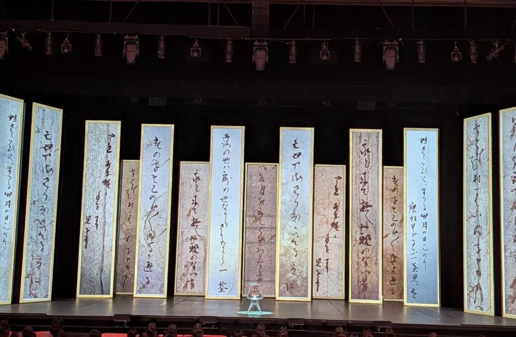 (2026年かてこさん撮影:舞台に並べられた小林一茶の俳句たち、圧巻です。)